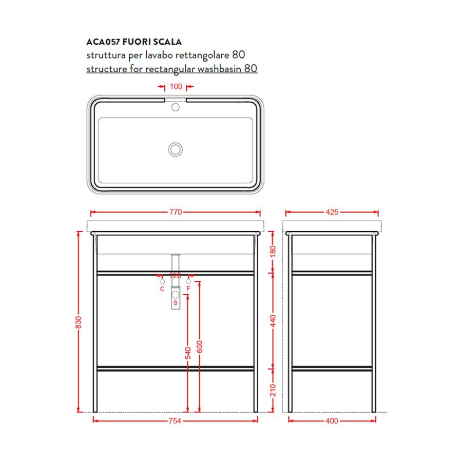 ARTCERAM Fuori scala Консоль металлическая для прямоугольной раковины 80 см nero matt ACA057 17