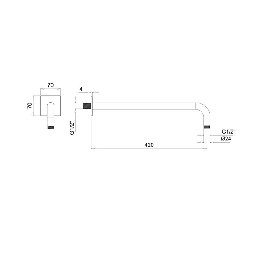 ALMAR Universal Настенный держатель 420 мм для верхнего душа pvd brushed high brass E021116.HB