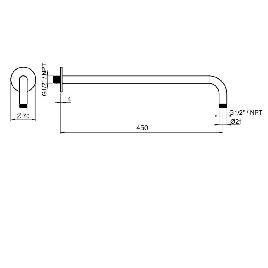 ALMAR Universal Настенный держатель 450 мм для верхнего душа stainless steel E021103.316