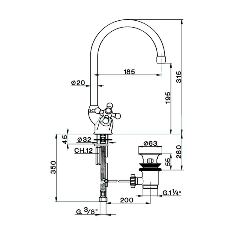 • Излив 185 мм.
