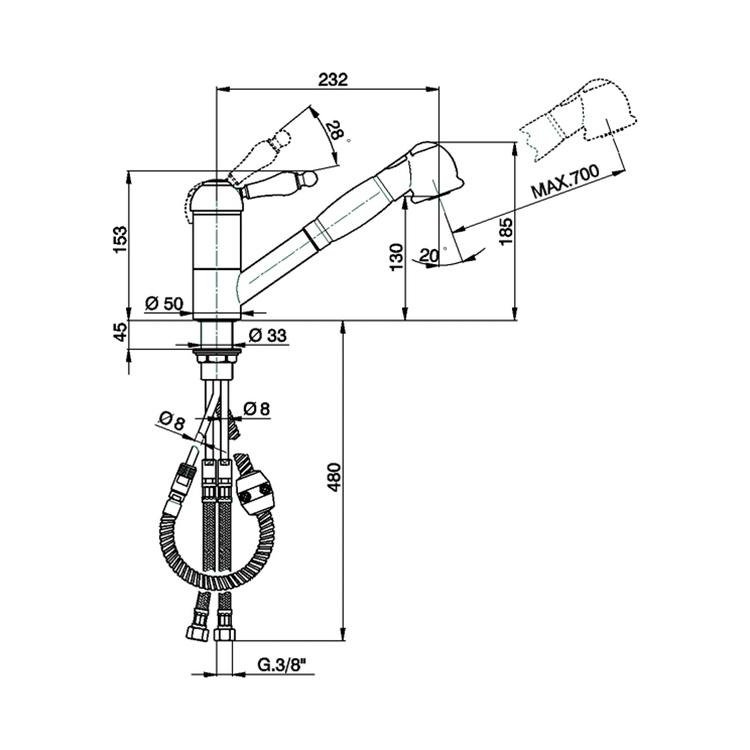 Уникальная система с выдвижным носиком-душем идеально подходит для использования в кухне. Обеспечивает удобство при мытье продуктов и посуды. А возможность выбора одного из двух вариантов потока - струя или душ - обеспечит комфорт и легкость в повседневных заботах на кухне.