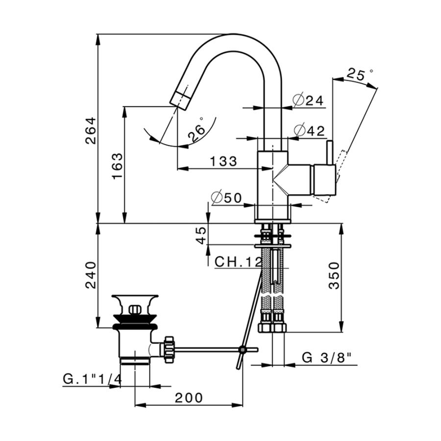 CISAL Less New Смеситель однорычажный для раковины 1 отверстие с донным клапаном chrome LN00047521