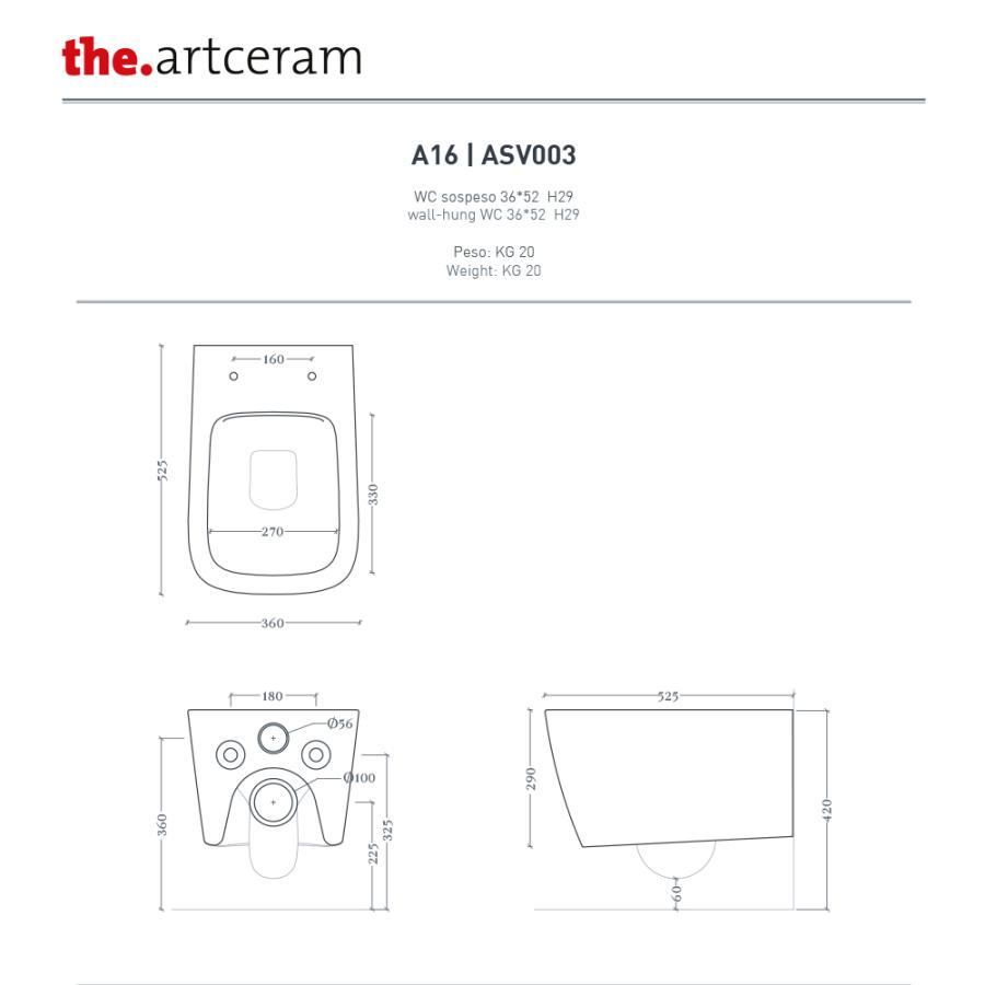 ARTCERAM A16 Унитаз подвесной 36х52.5 см zync yellow ASV003 12 00