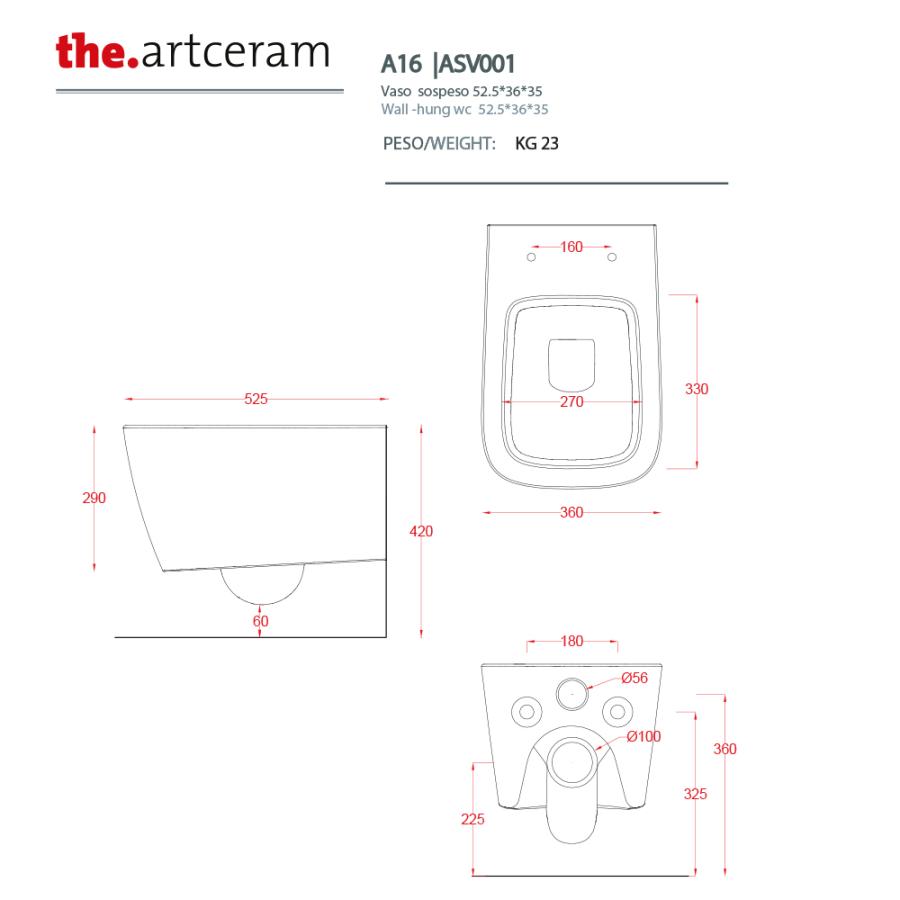 ARTCERAM A16 Унитаз подвесной 36x52.5 см glossy white ASV001 01 00