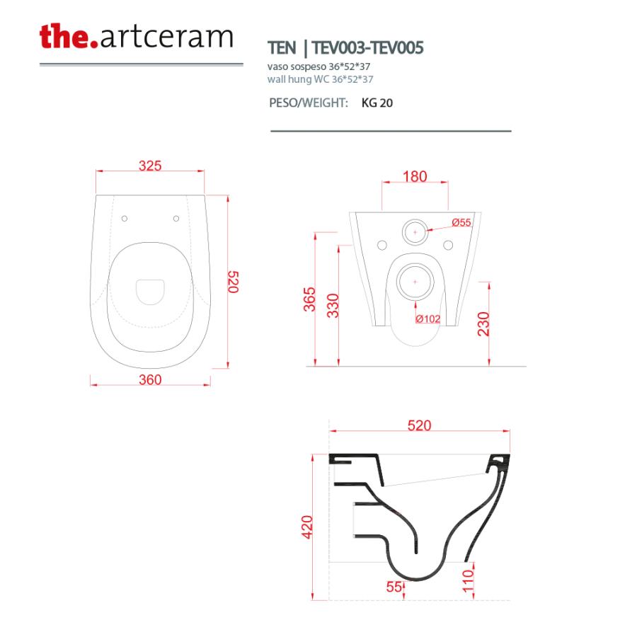 ARTCERAM Ten Унитаз подвесной 36x52 см glossy white TEV005 01 00