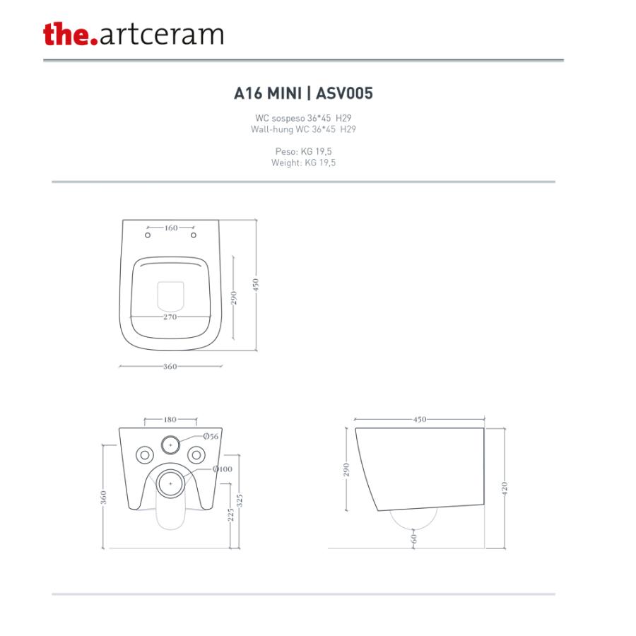 ARTCERAM A16 Унитаз подвесной укороченный 36х45 см glossy white ASV005 01 00